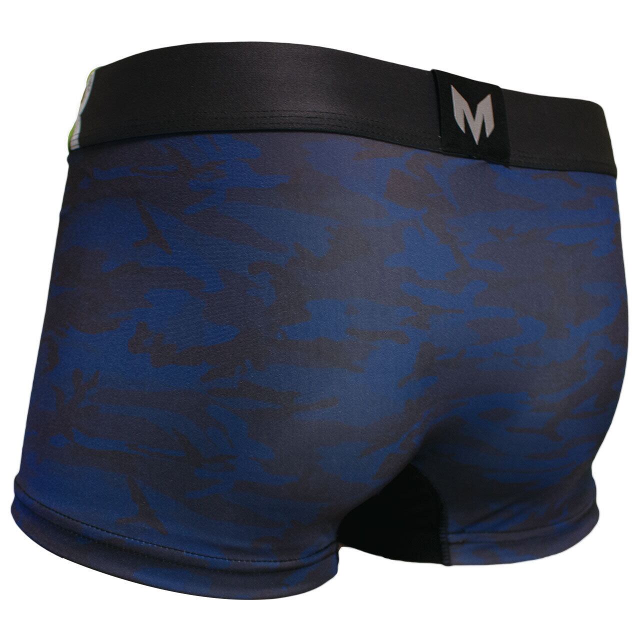 高級カジュアルジャケットのような落ちつた紺カモをボクサーパンツに再現。