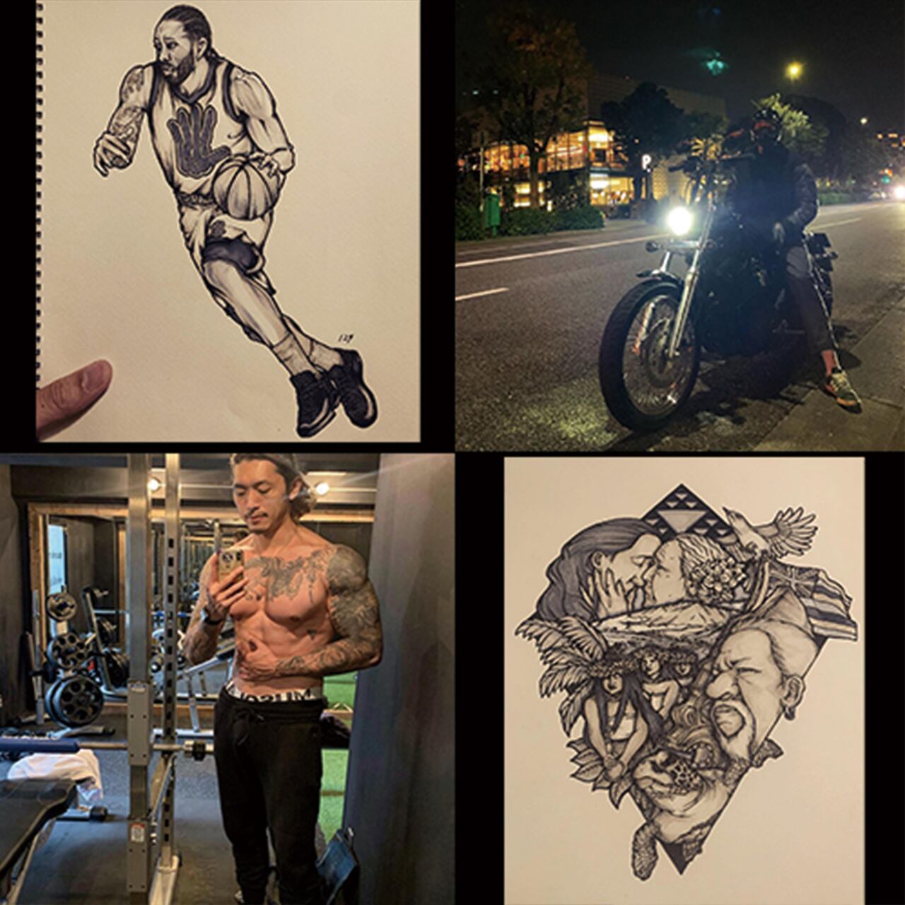 正面右前に配置されたマークはbond.fitnessが常に人と接する上で大切にしている言葉「LOVE&RESPECT」と縁があるラッキーナンバーの数字「127」を自然のパワーを感じるPolinesian柄で彼自身がデザイン。そして全体的にもPolinesian柄を配置してまとめました。
